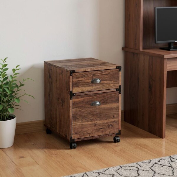 The 22-inch walnut wood two drawers filing cabinet combines functionality with an industrial style. Crafted from high-quality manufactured wood, this cabinet features a rich walnut color that enhances any workspace. With two spacious drawers included, it provides ample storage for documents and supplies, helping you stay organized. Its sleek design not only maximizes space but also adds a touch of sophistication to your office or home environment. This versatile piece is perfect for both modern and traditional decor, making it an essential addition to your furniture collection. Create a clutter-free atmosphere while enjoying the elegant aesthetic of this beautifully designed filing cabinet. 22-inch h x 15.5-inch w x 20-inch d.