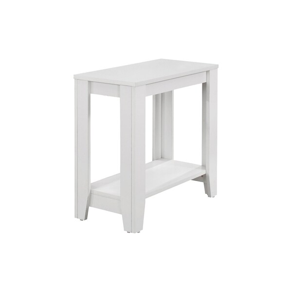 Optimize your space and add some charm to your room with the 22-inch white end table with shelf. Made of manufactured wood, the white coloration throughout gives this piece an updated and refreshing look. Help to keep your space organized with the included single shelf. An ideal location for placing your snacks and drinks, and a place to keep your lamp, frames, or other accessories. This versatile table is a great accent for most any room. 22-inch H x 11.75-inch W x 23.75-inch D