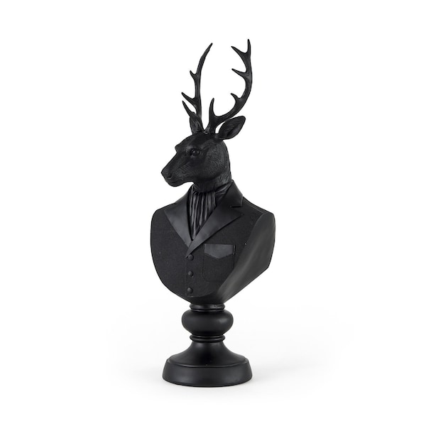 23" Black Polyresin Suited Deer Bust Tabletop Sculpture