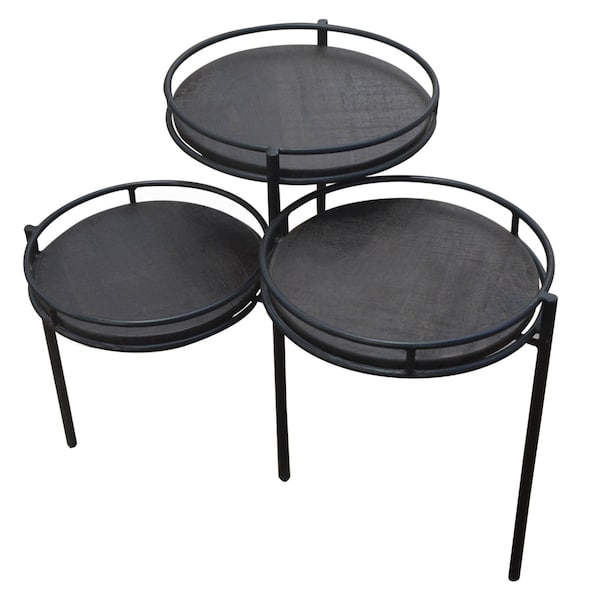 Show off your exquisite taste with this 23" black solid wood and iron round end table. The black coloration runs throughout this good looking iron and solid wood table. Side tables are a great way to flank your sofa, use as an accent next to your favorite chair, or can even be used bedside. You can match it with other pieces to get the ideal look for your place. 23" H x 20" W x 27" D