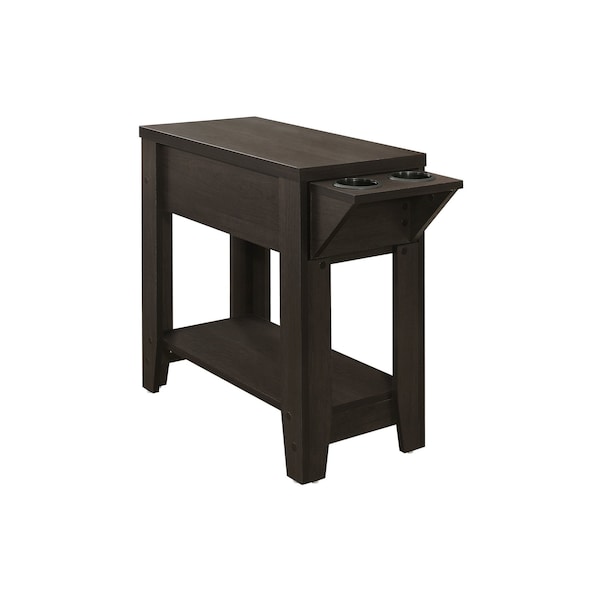 Optimize your space and add some charm to your room with the 23-inch brown end table with shelf. Made of manufactured wood, the brown coloration throughout gives this piece an updated and refreshing look. Help to keep your space organized with the included single shelf. An ideal location for placing your snacks and drinks, and a place to keep your lamp, frames, or other accessories. This versatile table is a great accent for most any room. 22.5-inch H x 28.75-inch W x 12-inch D