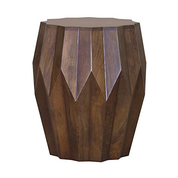 Distinctive in style the 23-inch dark brown solid wood drum end table radiates a versatile charm. This table features quality hand-crafted construction from solid mango wood and an updated monotone color scheme with dark brown as the main color on both the top and the base. Side tables are a great way to flank your sofa, use as an accent next to your favorite chair, or can even be used bedside. You can also use it as an entryway table to hold your keys. 22.5-inch h x 19-inch w x 19-inch d.