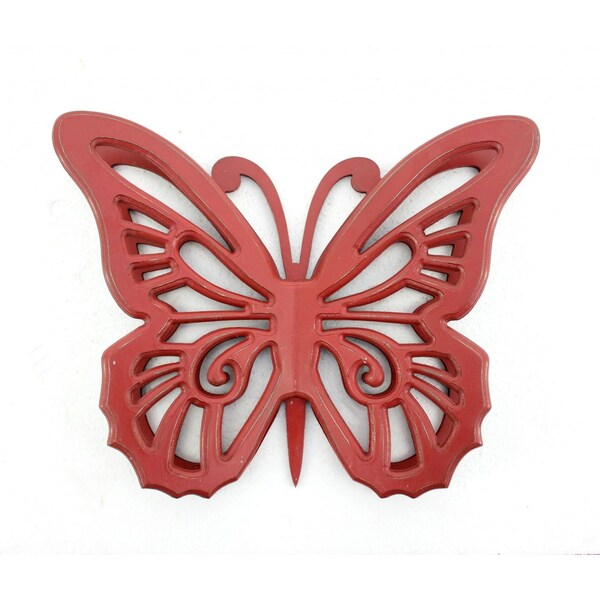 let our rustic butterfly wooden wall decor add a touch of nature-inspired design with an antique flair to your beloved home. it features a butterfly shaped construction with exciting red finish to create awe and elegance around the ambience of your home whether indoor or outdoor. irrespective of where you want this mounted in your home, in lobby, living room, patio, study, hallway or terrace, it will surely add an amazing and stereoscopic view to the scene. for your free choice, there are other three shades of this items available in our collection. - rustic collection - butterfly shape - red finished
