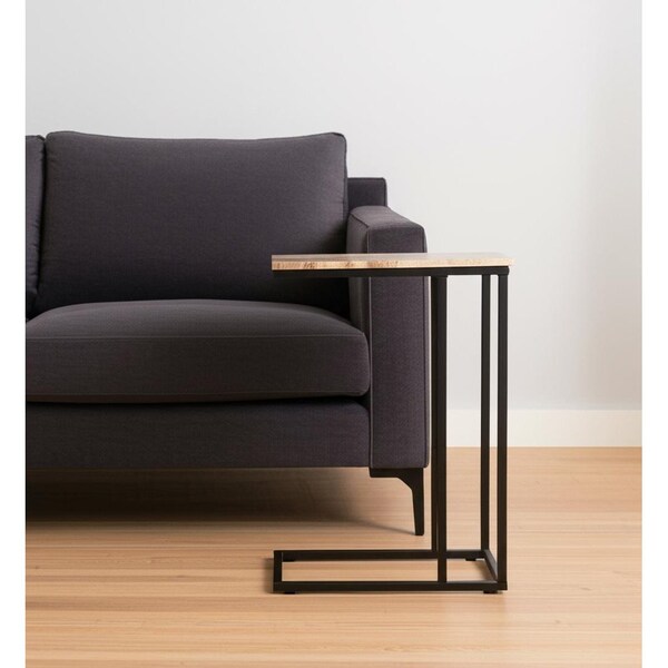 Distinctive in style the 24-inch brown tan and black marble and metal end table radiates a versatile charm. A black metal frame is finished off with a brown and tan marble top that is the epitome of quality construction and design. An ideal location for placing your snacks and drinks, and a place to keep your lamp, frames, or other accessories. This versatile table is a great accent for most any room. 24-inch h x 9.5-inch w x 16.25-inch d.