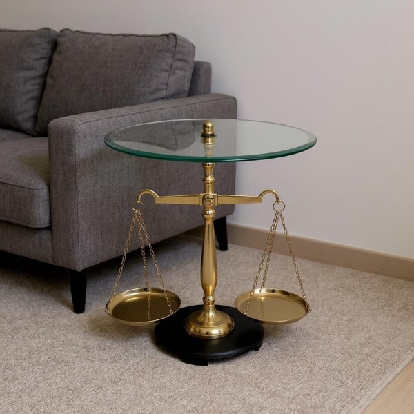 24" Clear and Gold Glass and Aluminum Libra Scales End Table