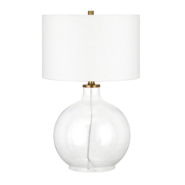 With this 24-inch clear glass table lamp with white drum shade you can bring in design to any space along with adding some ambient lighting. The base of this lamp is made of glass finished in a clear tone. The white shade has a drum shape and is made from fabric. This standard table lamp is designed to provide general lighting to the area. High quality design makes this a great lamp for not only lighting, but accenting a room with style. It is perfect for virtually any decor. 24-inch H x 15-inch W x 15-inch D