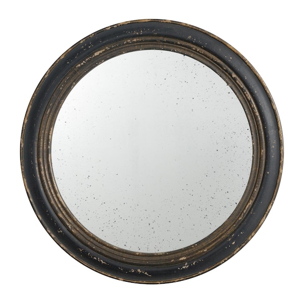 Add a touch of vintage style to any space in your home with this 24-inch dark brown distressed wood round framed accent mirror. The frame of this mirror is made from engineered wood which has rustic dark brown finish. Its traditional style making this the perfect versatile accent piece for most any decor. This unique mirror will look great as part of your existing wall decor or you can use it as a statement piece anywhere in your home. An antiqued and distressed mirror finish gives this piece lots of vintage charm. 23.6-inch H x 23.6-inch W x 0.8-inch D