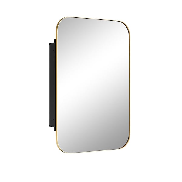 Add beauty to your bathroom or home with this 24-inch gold metal framed bathroom vanity mirror with cabinet. Framed with metal, this mirror will bring practical application and fashionable design to your space, adding some modern flair to your decor. The rectangular mirror opens to revel storage shelves for your medicines, accessories, and beauty supplies. Features quality craftsmanship in every facet that ensures durability and long-lasting wear. Add this exceptional quality medicine cabinet mirror to your space for a beautiful reflection, functional storage, and a bit of elevated style. 24.00-inch h x 16.00-inch w x 2.00-inch d.