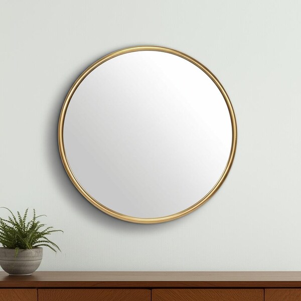 Beautify your space with this 24-inch gold metal round accent mirror. Framed with metal, this mirror will bring practical application and fashionable design to your space, adding some modern flair to your decor. This mirror will be a great useful addition to your home but will also help elevate the space in the room. Add this exceptional quality mirror to your space for a beautiful reflection and a bit of elevated style. 24-inch h x 24-inch w x 0.75-inch d.