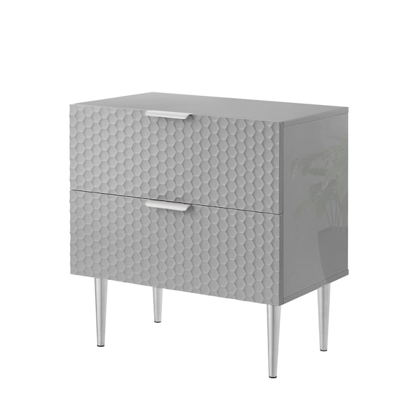 24" Gray And Silver Wood And Stainless Steel End Table With Two Drawers