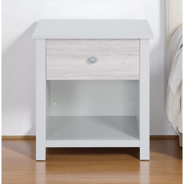 Good looking design and practical styling meet to form this 24-inch gray solid wood and wood one drawer nightstand. Robust in design, the bed side table has been expertly crafted from solid wood. Includes a drawer to help keep your essentials close by and hidden. An easy-access shelf gives you additional storage and display space. The unsung hero of the bedroom, this nightstand is perfect for keeping a glass of water, lamp, alarm clock, jewelry, and more, close by and easily accessible. Versatile in use this nightstand would also work as a great end table in the living room, hallway, or office. 24-inch h x 22-inch w x 17.75-inch d.