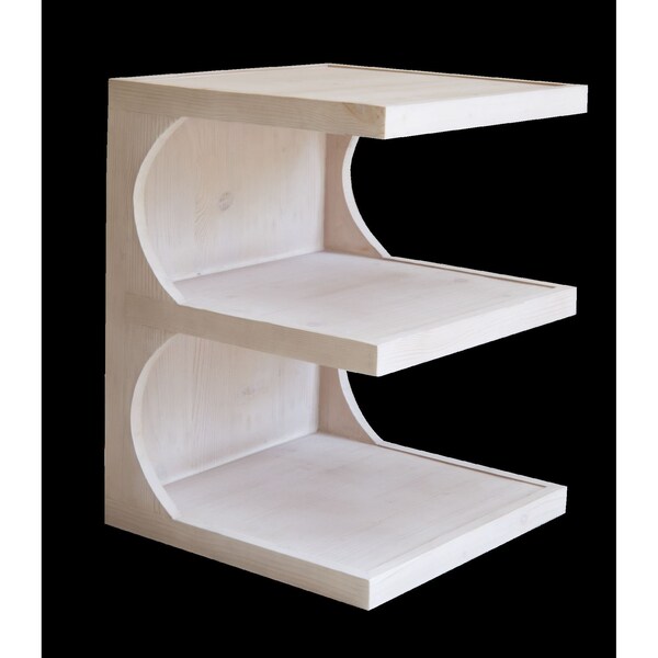 Distinctive in style the 24-inch natural solid wood end table with two shelves radiates a versatile charm. This table is made from solid wood in a natural color throughout the base and top. Includes 2 shelves for additional storage or display space. An ideal location for placing your snacks and drinks, and a place to keep your lamp, frames, or other accessories. You can also use it as an entryway table to hold your keys. 24-inch H x 18-inch W x 18-inch D