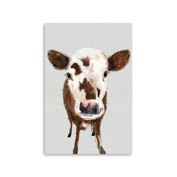 Add an air of fashion to your room and rejuvenate the space with this 24 inches x 16 inches brown and white baby cow face canvas wall art. This print is a visual artistic expression that allows you to decorate your space in style. Reproduced for you on canvas, this hanging decorative accent will be a trendy and fashionable way to dress your walls. Hang on your wall to add some up to date fashion and decoration. Instantly liven up your space with this art that brings color and dimension to your walls. 24 inches H x 16 inches W x 1.25 inches D
