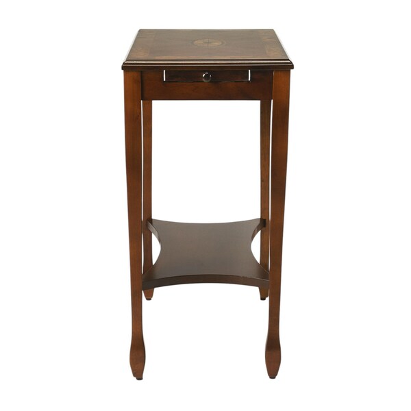 Show off your exquisite taste with this 25" medium brown manufactured wood rectangular end table with shelf. The medium brown coloration runs throughout this good looking solid and manufactured wood and manufactured wood table. Complete with a purposefully distressed finish, this table has an aged, vintage, and rustic feel. Includes a single shelf for handy storage or display space. A great accent on either side of the sofa or bed, this adorable end or side table is just what you need. This versatile table is a great accent for most any room. 25" H x 12" W x 18" D