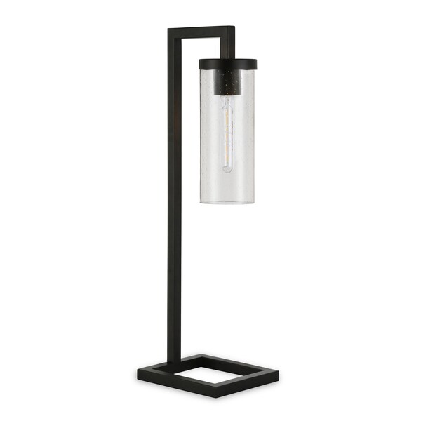 This 26-inch black metal arched table lamp with clear seeded cylinder shade is the perfect combination of design and function. The base of this lamp is made of metal finished in a black tone. The clear cylinder glass shade is a great compliment to this lamp. A sophisticated take on a classic, this arched table lamp is a great option for a unique look. High quality design makes this a great lamp for not only lighting, but accenting a room with style. The perfect lamp to create just the right natural and soothing light in your space. 26-inch H x 8-inch W x 7-inch D
