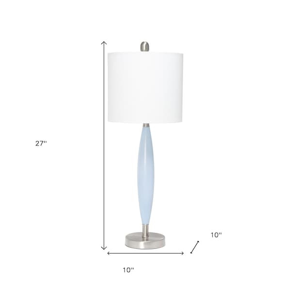 27" Blue And Silver Metal Novelty Table Lamp With White Drum Shade