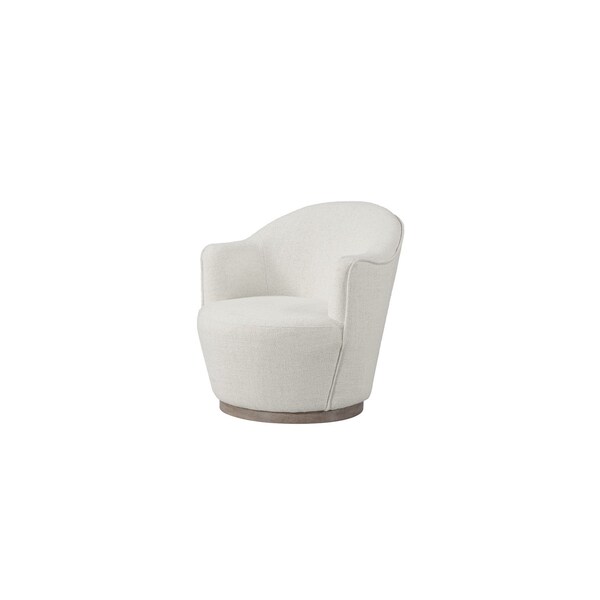 Fill your living room, bedroom, or office with fashionable seating options with this 27-inch off white fabric swivel barrel chair. This gorgeous solid color off white barrel chair is masterfully upholstered in durable fabric. Giving the chair stability and structure, the inner frame is constructed with high quality manufactured wood, includes comfy armrests, and features a fixed back that comes complete with soft and comfortable cushioning. This chair features a swivel function so that you can turn and angle easily to interact with your space. 30.7-inch h x 27.4-inch w x 32-inch d.