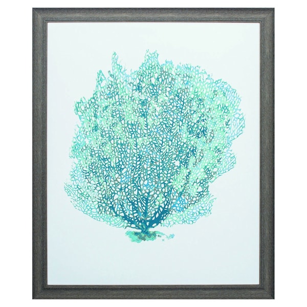 27" X 33" Distressed Wood Toned Frame Aqua Coral On White Ii