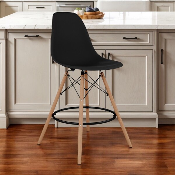 28" Black And Brown Heavy Duty Plastic And Solid Wood Counter Height Bar Chair