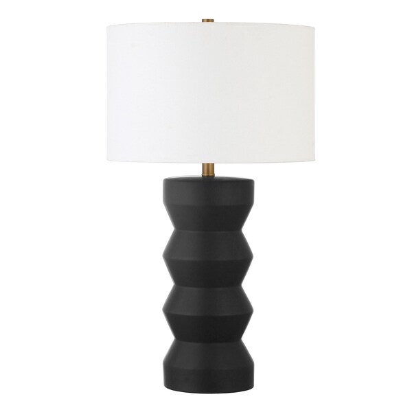 Bring of level of elegance and freshness to your space with this high quality 28-inch black ceramic table lamp with white drum shade. A gorgeous black ceramic base brings just the right amount of pizzazz to this fabulous lamp. The white drum fabric shade is finishes this piece off nicely and symmetrically this standard table lamp is designed to provide general lighting to the area. The light that this lamp throws is soft and warm to elevate the look of most any space in your home. It is perfect for virtually any decor. 28-inch H x 15-inch W x 15-inch D