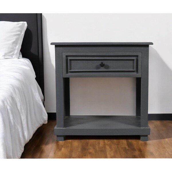 Good looking design and practical styling meet to form this 28-inch distressed gray one drawer solid wood nightstand. Robust in design, the bed side table has been expertly crafted from solid wood. The easy open drawer allows you hidden storage to keep your essentials close at hand. An easy-access shelf gives you additional storage and display space. This piece is purposefully distressed to give a worn, rustic/vintage finish. The unsung hero of the bedroom, this nightstand is perfect for keeping a glass of water, lamp, alarm clock, jewelry, and more, close by and easily accessible. Versatile in use this nightstand would also work as a great end table in the living room, hallway, or office. 27.9-inch h x 28-inch w x 16-inch d