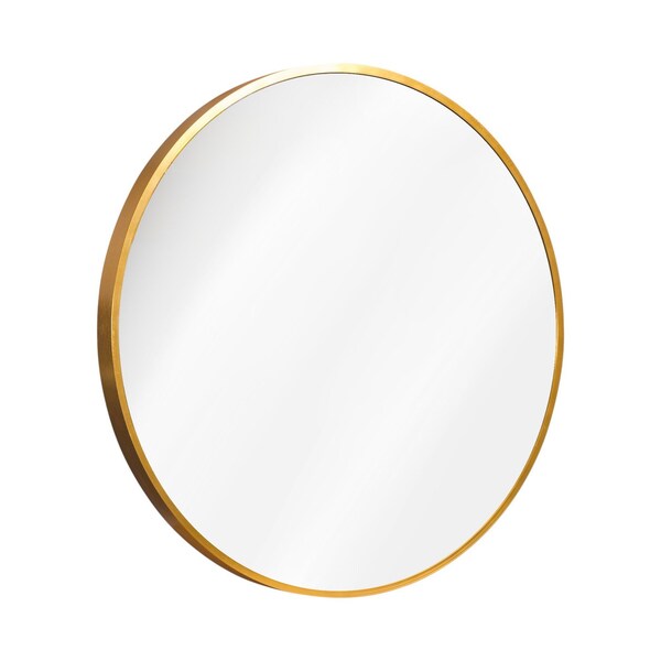 Beautify your space with this 28-inch gold aluminum round framed accent mirror. Features quality craftsmanship in every facet that ensures durability and long-lasting wear. This mirror will be a great useful addition to your home but will also help elevate the space in the room. A slim minimalist profile gives this mirror a sleek look for your bathroom, bedroom, living room, hallway, and more. Produced with premium quality shatter proof tempered glass for a beautiful reflection, this mirror will provide an exceptional visual experience. 28.00-inch h x 28.00-inch w x 1.10-inch d.