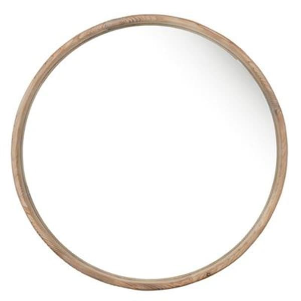 Give your interior a light-boosting effect with this 28" natural rustic brown wood frame round wall mounted accent mirror. This round shaped mirror will help to open up the space of your room. The sturdy frame with natural knots and grains and slight whitewash distressing adds extra style and design flair to this great mirror. This mirror will give you a perfect distortion-free reflection every time. Mirrors are a great way to add life and luster to your room. 27.6" H x 27.6" W x 2" D