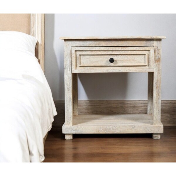 Give your room the look and feel of 5-star accommodations with this 28-inch white solid wood distressed one drawer nightstand. Made of high quality solid wood that is built to last. The easy open drawer allows you hidden storage to keep your essentials close at hand. An easy-access shelf gives you additional storage and display space. This piece is purposefully distressed to give a worn, rustic/vintage finish. The unsung hero of the bedroom, this nightstand is perfect for keeping a glass of water, lamp, alarm clock, jewelry, and more, close by and easily accessible. Versatile in use this nightstand would also work as a great end table in the living room, hallway, or office. 27.9-inch h x 28-inch w x 16-inch d.