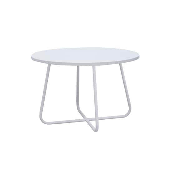 28" White Wood And Metal Round Cross Legs Coffee Table