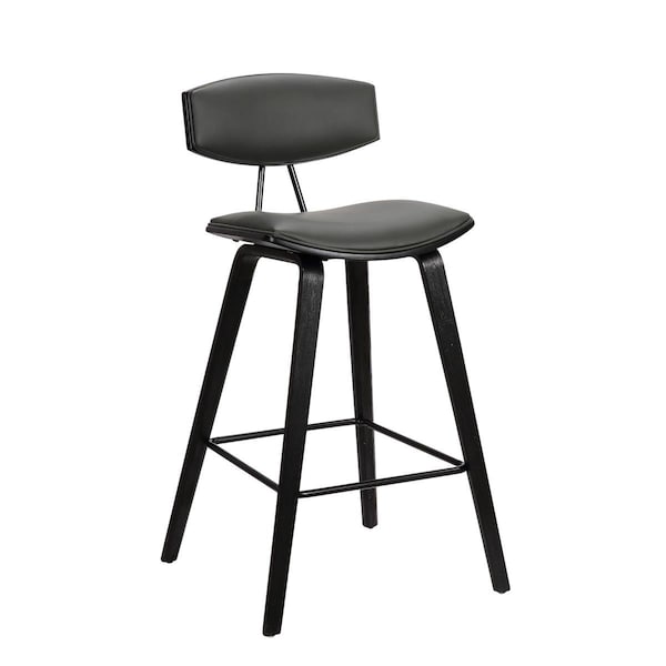 29 in. Gray Faux Leather Mid Century Modern Bar Stool Gray