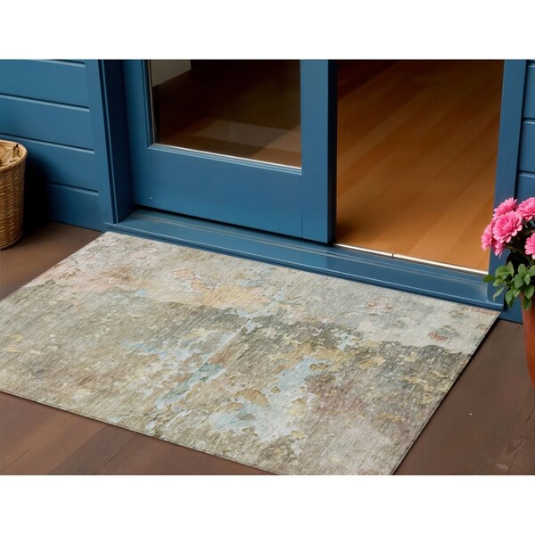 3' X 5' Brown Abstract Washable Indoor Outdoor Area Rug