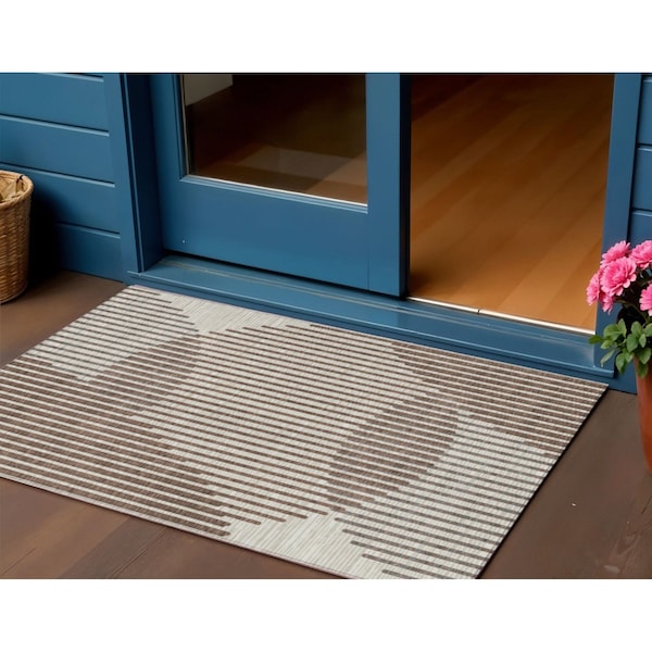 3' X 5' Brown And Beige Geometric Washable Indoor Outdoor Area Rug