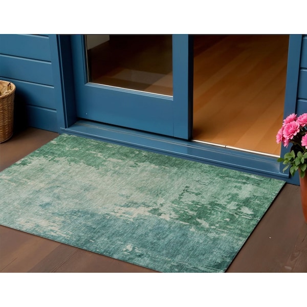3' X 5' Emerald Abstract Washable Indoor Outdoor Area Rug