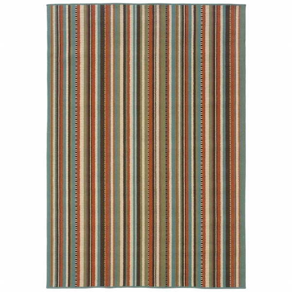 3 x 5 ft. Striped Indoor Outdoor Rectangle Rug Green & Brown