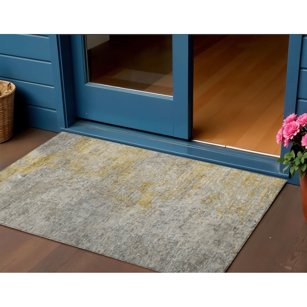 3' X 5' Gray Abstract Washable Indoor Outdoor Area Rug