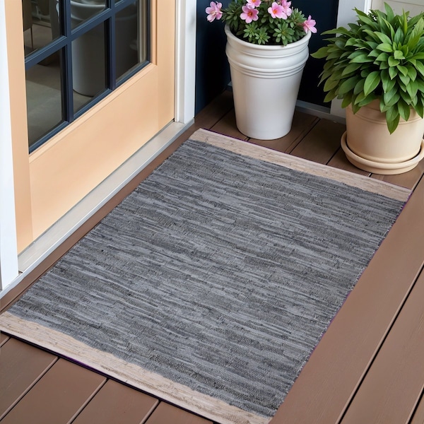 3' X 5' Gray and Beige Patchwork Handmade Indoor Outdoor Area Rug