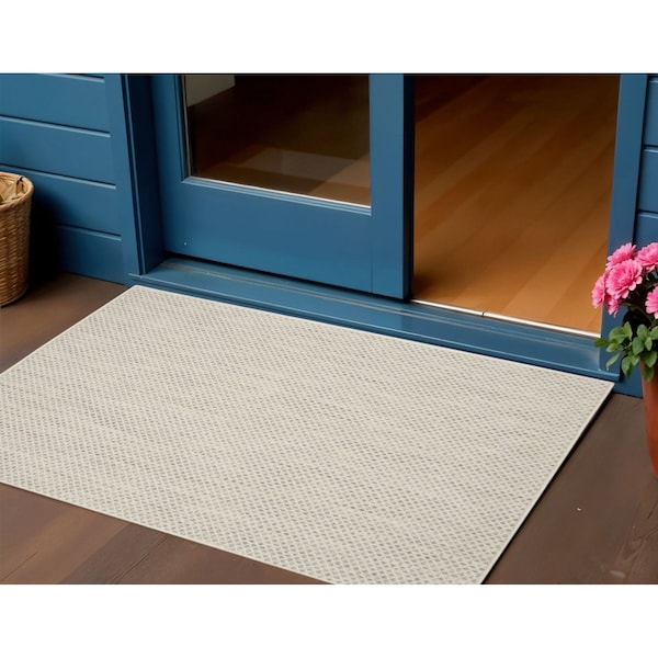 Set an inviting tone in your space with this 3-foot x 5-foot ivory and silver geometric indoor outdoor area rug. This rectangle shaped rug features a geometric design that will work well both indoors or out. A classic shape marries with good looking design for your living room, hall, bedroom, porch, patio, or poolside. Makes a great way to dress up your patio, porch, or poolside, but also works well as a durable and easy to maintain option in the kitchen, family room, or mudroom. 36-inch h x 60-inch w x 0.25-inch d.