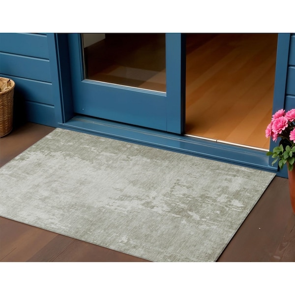 3' X 5' Linen Abstract Washable Indoor Outdoor Area Rug