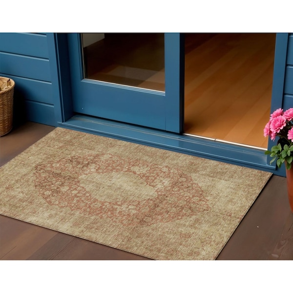 3' X 5' Rust And Beige Medallion Washable Indoor Outdoor Area Rug