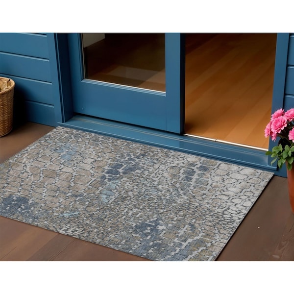 3' X 5' Silver Blue And Brown Abstract Washable Indoor Outdoor Area Rug