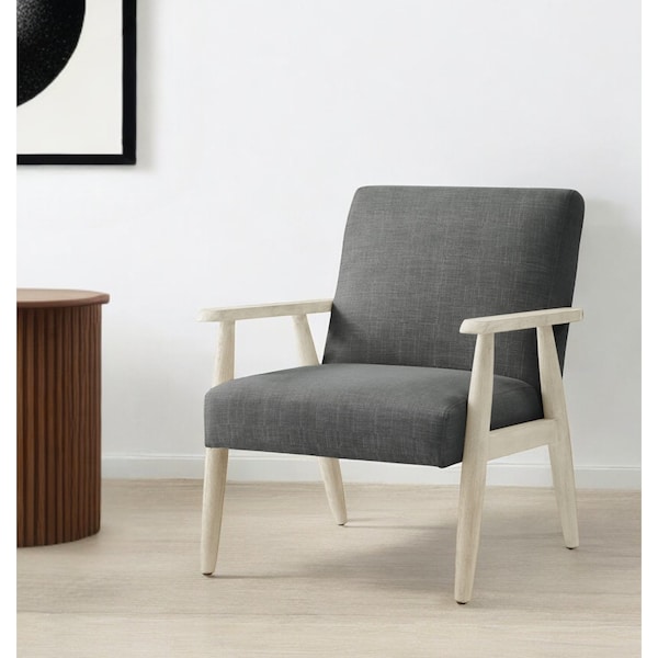 Fill your living room, bedroom, or office with fashionable seating options with this 30-inch charcoal and off white linen arm chair. Built to last this arm chair is finished in solid charcoal linen to give your room a great update. Giving the chair stability and structure, the inner frame is constructed with high quality solid wood, includes comfy armrests, and features a cushion back that comes complete with soft and comfortable cushioning. 32.3-inch h x 30-inch w x 27-inch d.