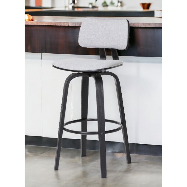 Comfortable enough to sit in for awhile, this 30-inch light gray and black fabric swivel low back bar height bar chair will transcend the look of your room. Quality construction from black manufactured wood combines with light gray fabric to give this stool a fresh and updated look. Not only good looking and stylish, this chair features a square shaped seat and a low back for the ultimate in comfort and enjoyment. Designed with a footrest for comfort and convenience. 40.5-inch H x 18.5-inch W x 18-inch D