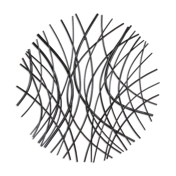 Unique and decorative, this 30-inch x 30-inch black metal circle abstract hanging dimensional sculpture will leave a lasting impression. Easily create a focal point in your room with this large, circular shaped modern decor that features a unique and abstract design. Handmade with care, this piece brings some authenticity to your surroundings. Instantly liven up your space with this art that brings color and dimension to your walls. 30.25-inch h x 30.25-inch w x 1.25-inch d.