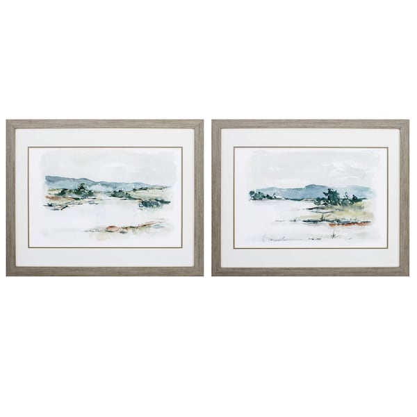 31" X 25" Woodtoned Frame Overcast Lake Study, Set Of 2, 2PK