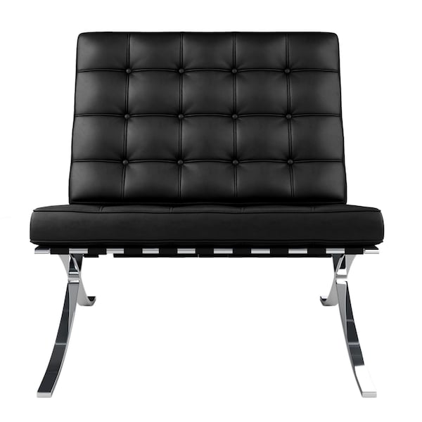 Give your living room, bedroom, or office a facelift with this beautifully crafted 32-inch black and silver italian leather tufted lounge chair. This gorgeous solid color black lounge chair is masterfully upholstered in durable italian leather. Giving the chair stability and structure, the inner frame is constructed with high quality stainless steel and features a tufted back that comes complete with soft and comfortable cushioning. The tufted cushions add fine designer detailing. Nailhead trim gives this chair a refined look that adds additional texture and visual interest. 32-inch h x 31.5-inch w x 30-inch d.