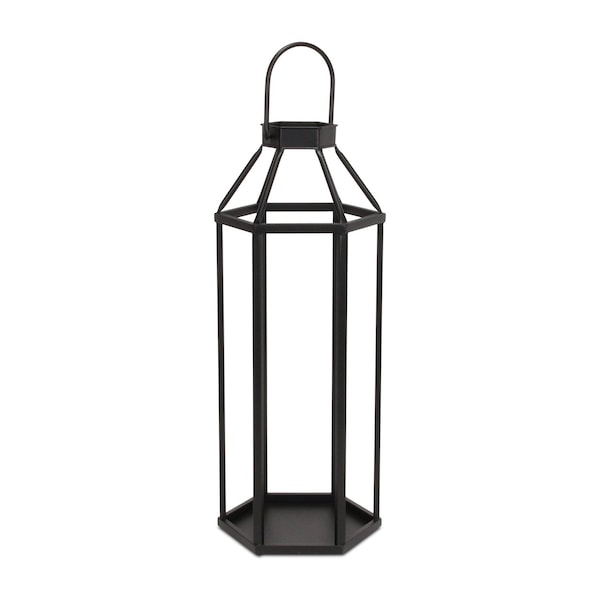Stylize your tabletop, light up your back patio or add the perfect touch of low light to your living room with this 32-inch black geometric metal floor lantern candle holder. Handmade by skilled craftsmen and designed to add a glamorous glow to any event or table setting. This candleholder is the perfect illuminating design to accent your space in style. Candleholders are a decorative accent on their own. With our without candles. 31.50-inch h x 10.75-inch w x 9.50-inch d.