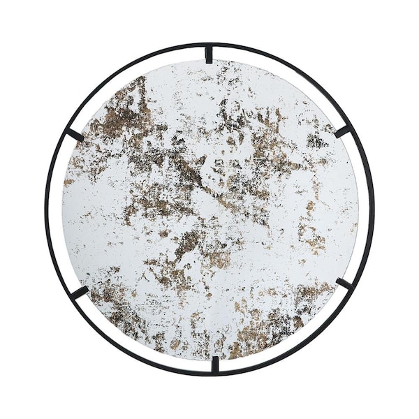 This 32-inch black round iron framed accent mirror is an embellishment perfect for your rooms. An antiqued and distressed mirror finish gives this piece lots of vintage charm. The round shaped mirror adds a nice touch of depth and texture and also makes it very practical. The mirror of traditional style can also decorate your room and bring brightness to your living space. Due to its high quality construction, it will last a lifetime. This unique mirror will look great as part of your existing wall decor or you can use it as a statement piece anywhere in your home. 31.5-inch H x 31.5-inch W x 0.7-inch D