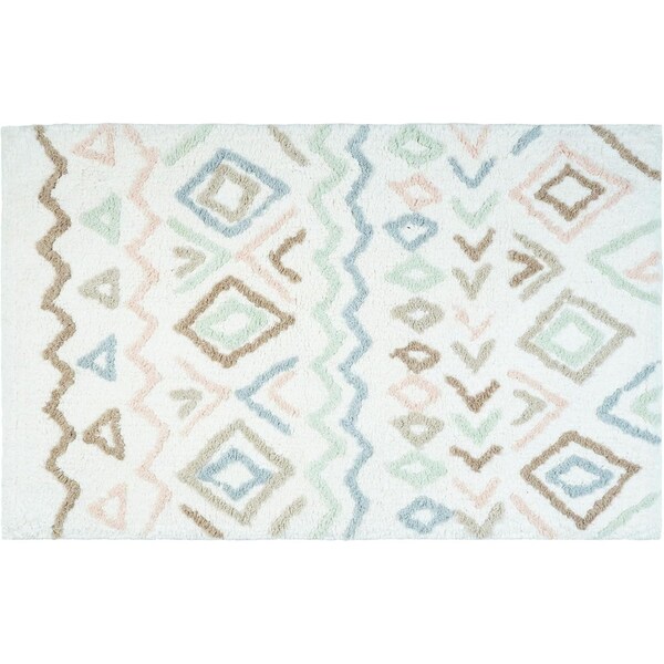 Soft and absorbent, this 32-inch blue brown and white cotton geometric bath rug is placed on the bathroom floor outside the bath or shower to provide a warm and dry surface to step onto after bathing, preventing slips and keeping the surrounding area clean and dry. Made of cotton, designed to be comfortable yet durable and built to last. Adding this geometric pattern will give your bathroom some visual interest and dimension. Features antimicrobial and mildew-resistant properties that offer several benefits, including preventing the growth of mildew and mold, maintaining a clean and hygienic bathroom environment, reducing unpleasant odors, and extending the lifespan of the rug itself. The rectangle shape will be the perfect addition to your space. Bath rugs provide a practical and stylish addition to your bathroom while allowing you to add a bit of a personalized and decorative touch. 20.00-inch h x 32.00-inch w x 0.30-inch d.