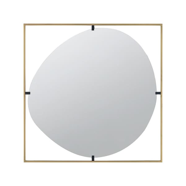 Beautify your space with an ornament that's original and unique at the same time with this 32-inch gold square iron framed accent mirror. This square shaped mirror will open up any space you put in piece in. This frame works nicely with the full-bodied mirror in the middle. Its style is certain to get rid of that trifling feel of boredom, and the quality of its finish and color will grant your place a flavor of fashion. On its own or in multiples, this mirror is a perfect accent piece for an entryway, bathroom, bedroom or any room in your home. 31.9-inch H x 31.9-inch W x 0.8-inch D