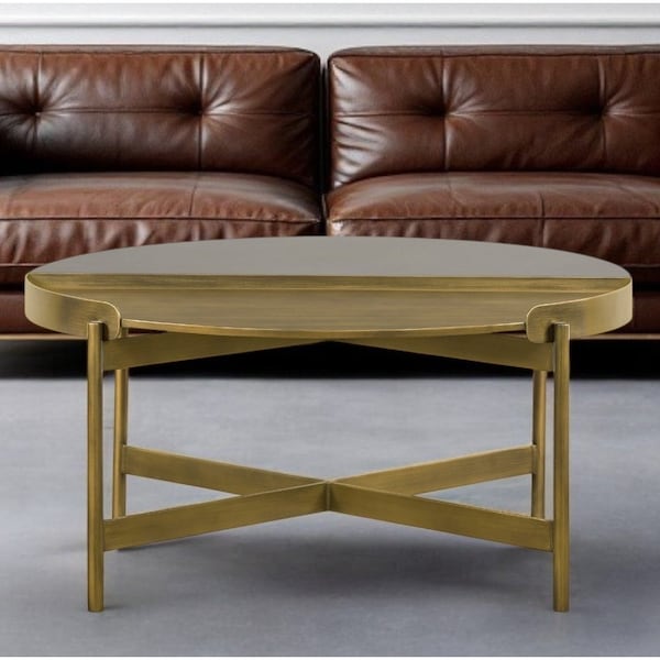 This good looking 32-inch gray and brass concrete and metal round coffee table is sure to inspire compliments no matter where it sits. The brass coloration of the high quality metal base marries nicely with the gray concrete top surface. This round table utilizes its unique shape to give your room a modern geometric accent. If you're looking for something that can fit into a living area, bedroom, or office, this coffee table is for you. This coffee table is the sturdy, reliable and stylish answer to your living room needs. 15.75-inch H x 31.5-inch W x 31.5-inch D